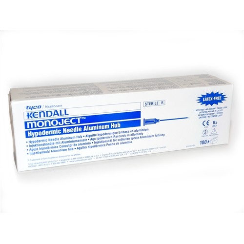 Disposable MONOJECT needles for use with luer slip syringes, plastic hub.